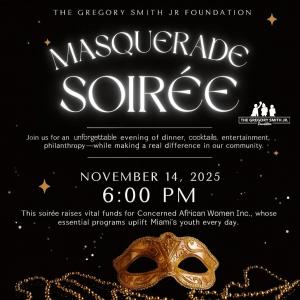 MIAMI, FL, UNITED STATES, October 16, 2025 /EINPresswire.com/ -- The Gregory Smith Jr. Foundation invites the community to an unforgettable evening of dinner, cocktails, and entertainment at the Masquerade Soirée, proudly sponsored by SteinLaw. The event will take place on Friday, November 14, 2025, at 6:00 PM, located at 901 NW 183rd Street, Miami, FL 33169.